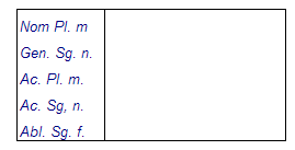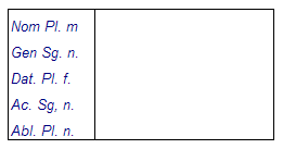 aedes, is (f): Templo, casainimicus, i (m): Enemigoinimica, ae (f): Enemigainimicitia, ae (f): Odiocastra, orum (n. pl.): Campamento militarcivis, is (m): Ciudadanocivilis, civile: Civilclassis, is (f): Flotainterdum: A vecesnondum: Todavía noomnis, omne: Todopauper, pauperis: Pobreparvus, parva, parvum: Pequeñoac: Yatque: Y